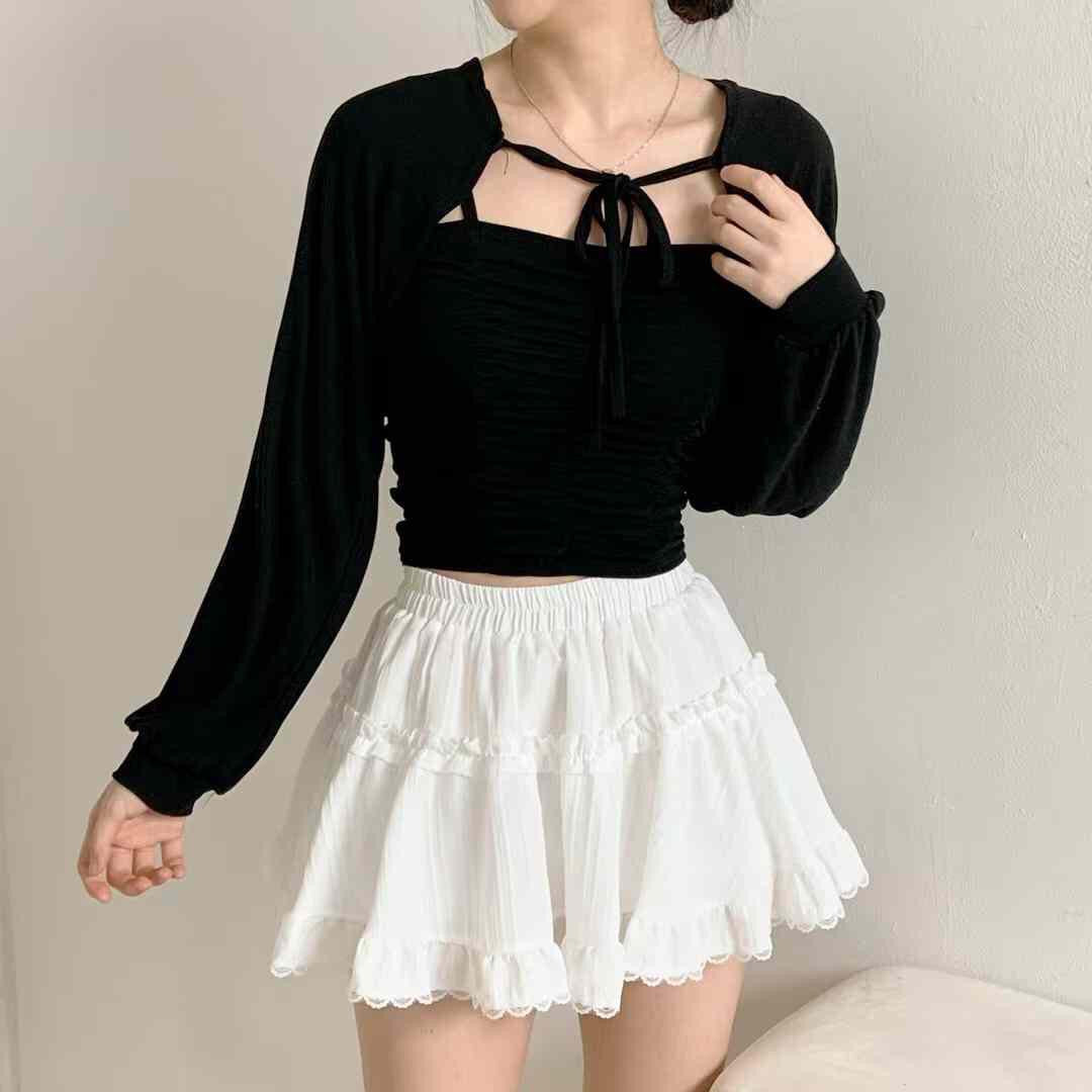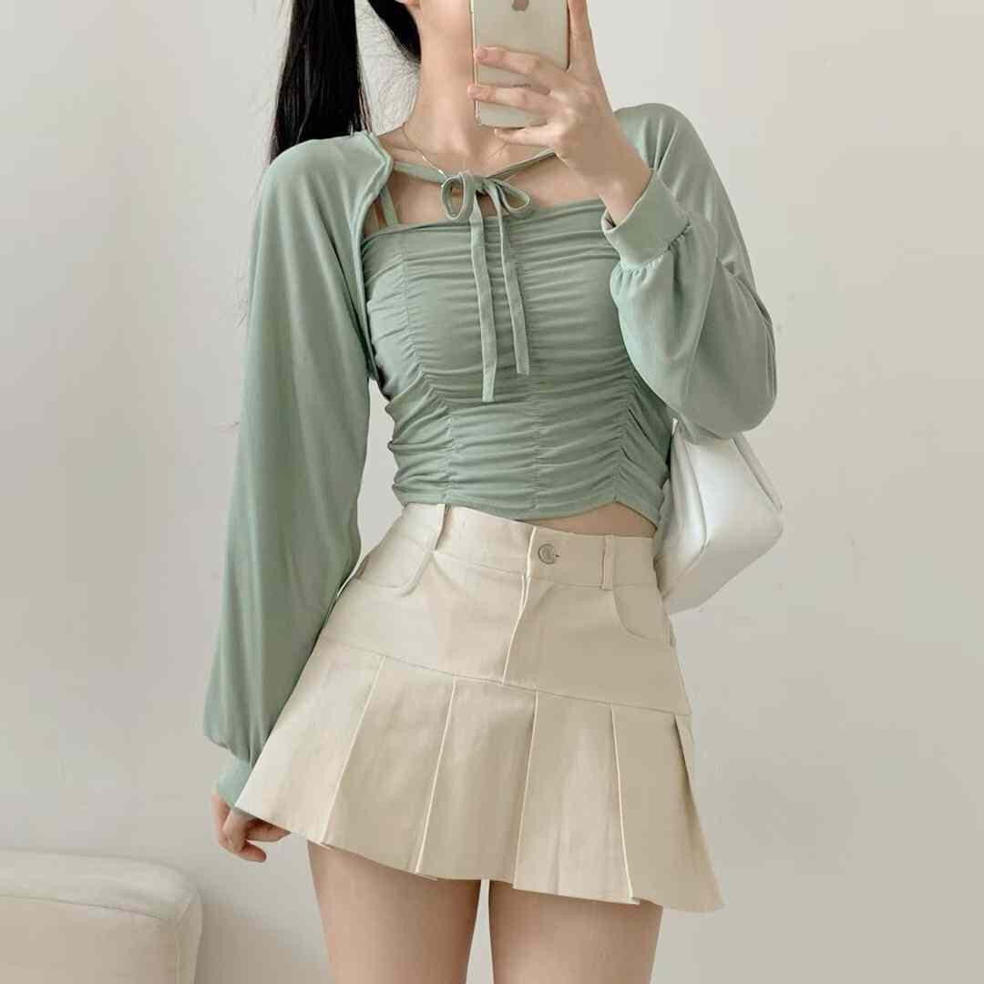 【早鳥價 | 綁帶套裝連背心】皺摺小套裝