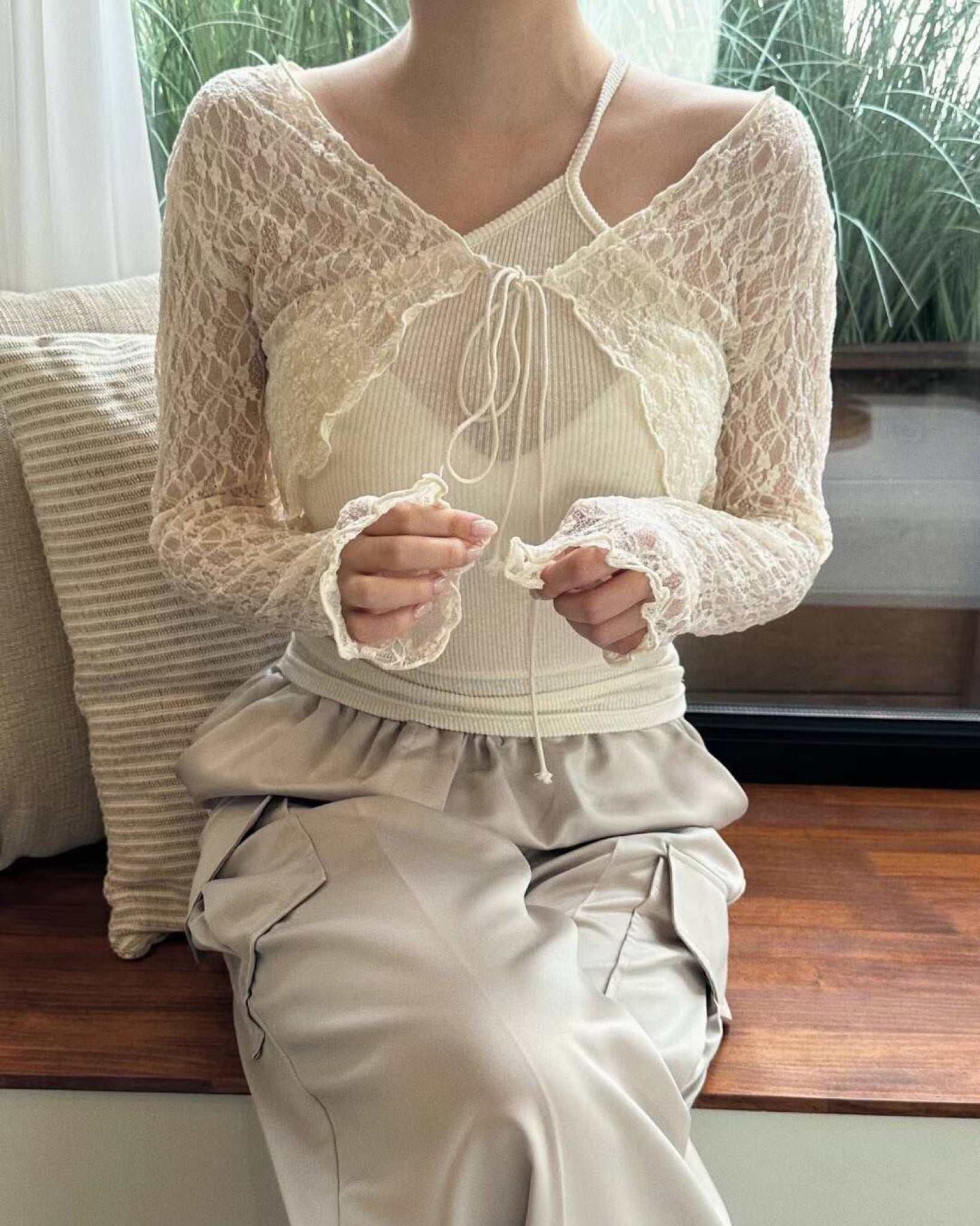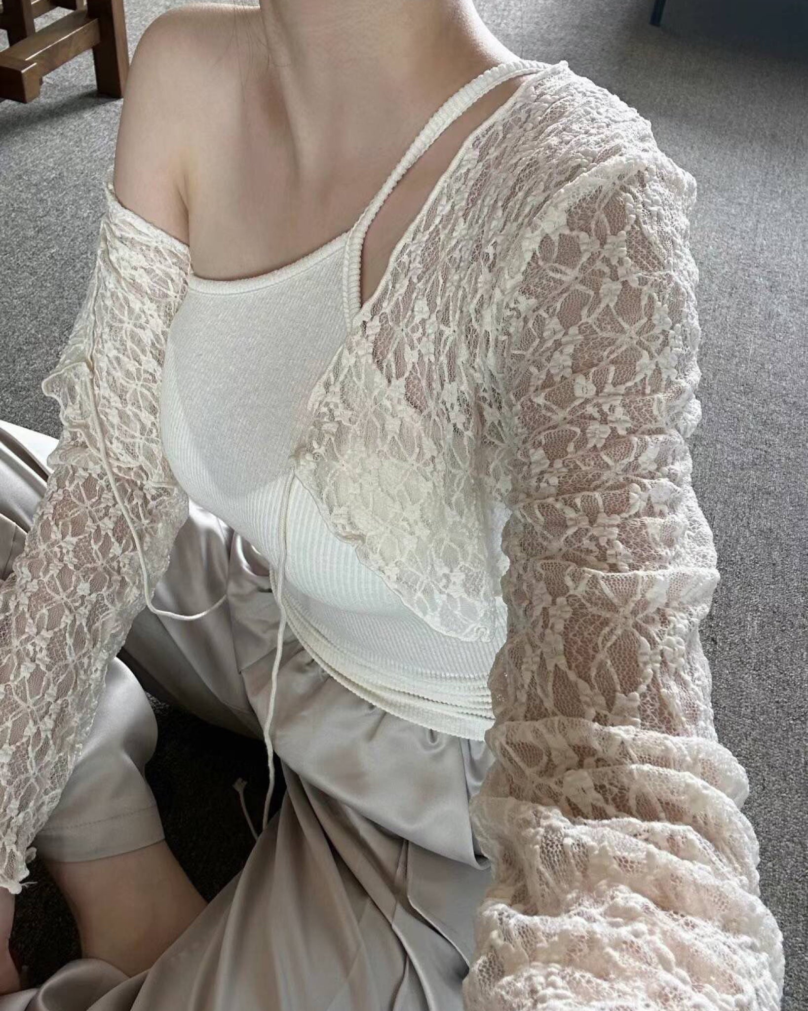 【𝗢𝗻𝗻𝗶 們必入ฅฅ 超強𝗟𝗮𝗰𝗲回歸 ⁽⁽٩(๑˃̶͈̀ ᗨ ˂̶͈́)۶⁾⁾ 】蕾絲小綁帶外套