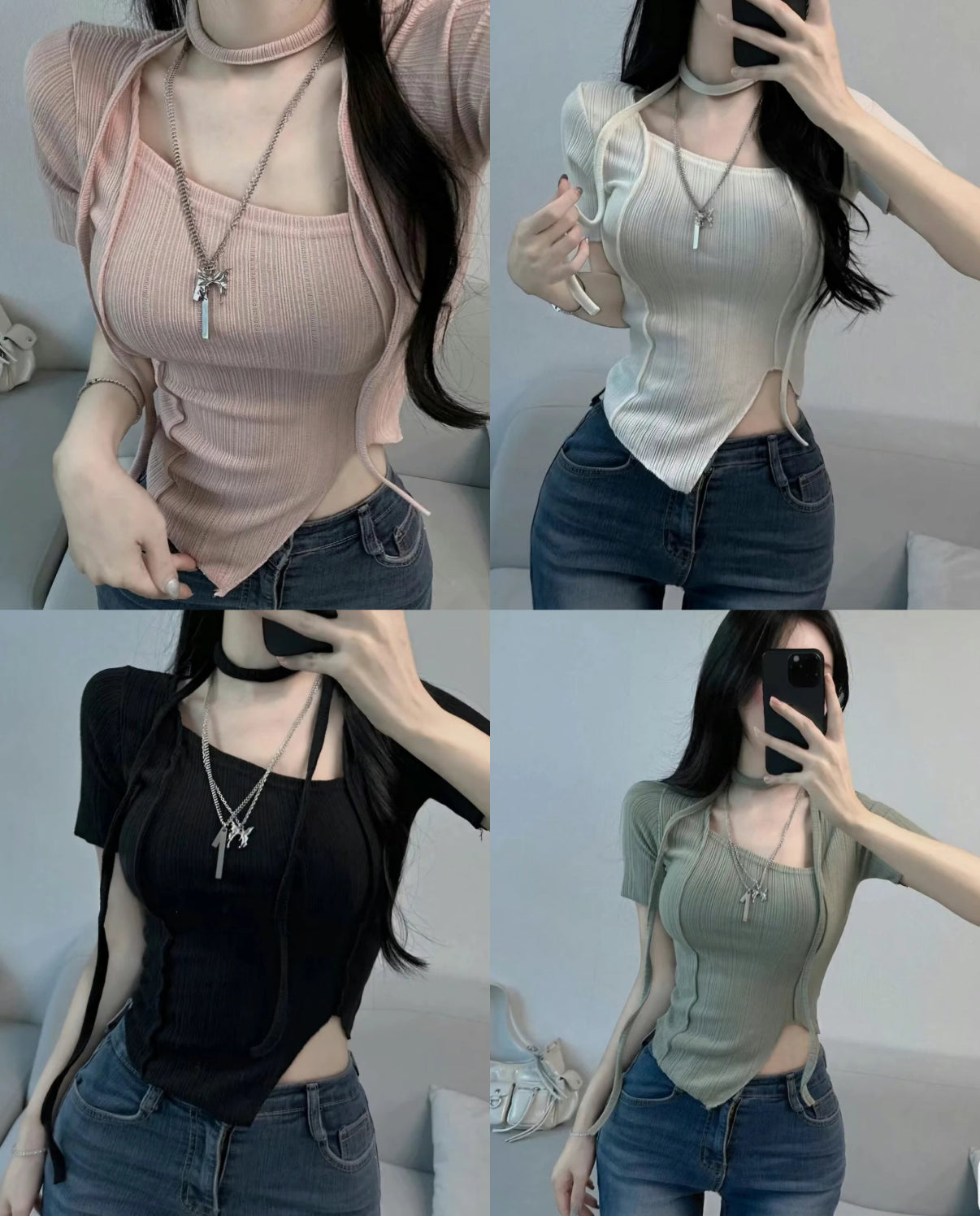 【•°¤超顯比例!暗直紋!不規則𝗧𝗢𝗣 🍭下擺開叉💗】 𝗕𝗶𝗹𝗹𝗼𝘄 𝗦𝗰𝗮𝗿𝗳 𝗧𝗼𝗽