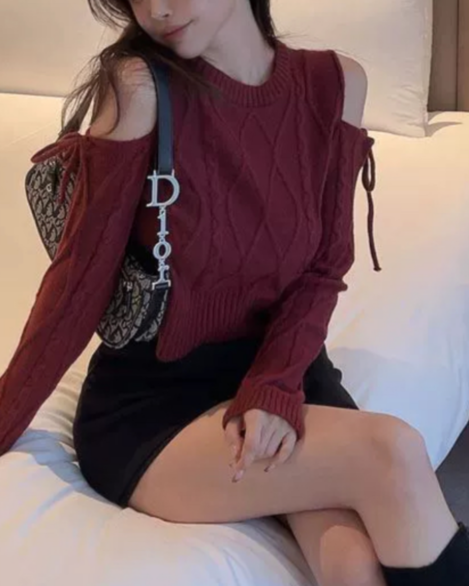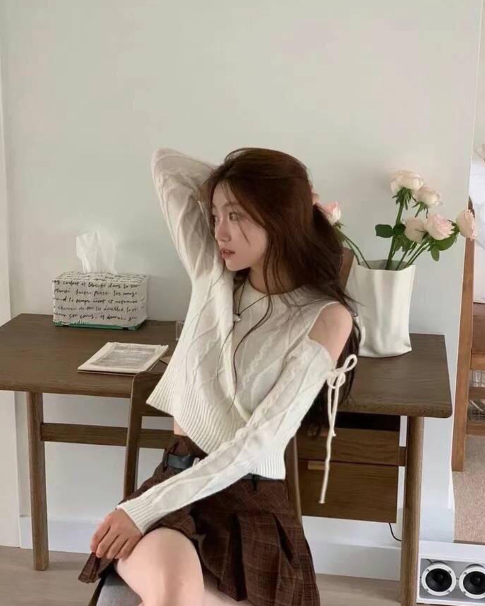 【紅白色必入 !自動露肩蝴蝶結綁帶~不顯肥.ᐟ.ᐟ】𝗕𝘂𝘁𝘁𝗼𝗻 𝗖𝗿𝗼𝘀𝘀-𝗦𝗵𝗼𝘂𝗹𝗱𝗲𝗿 𝗧𝗼𝗽