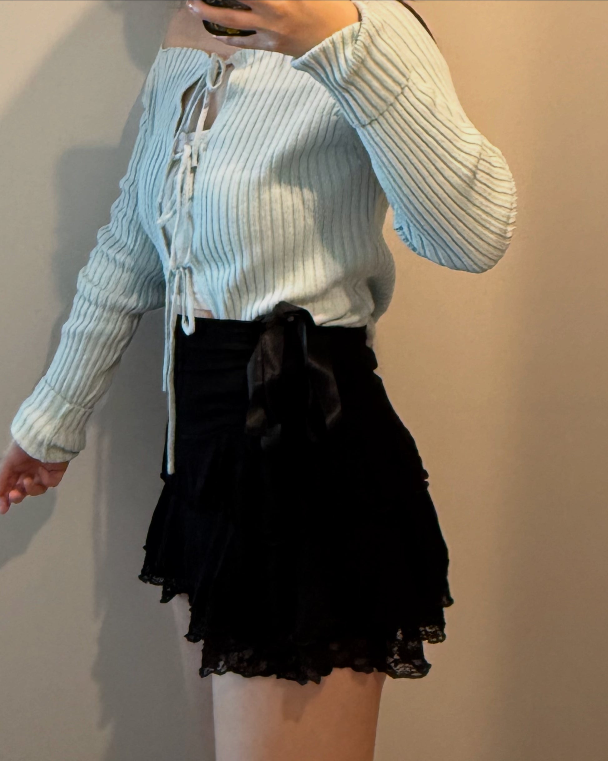 【微甜綁帶 🍉 🍉 蓬~鬆~內有打底褲 !】仙氣修腰短裙