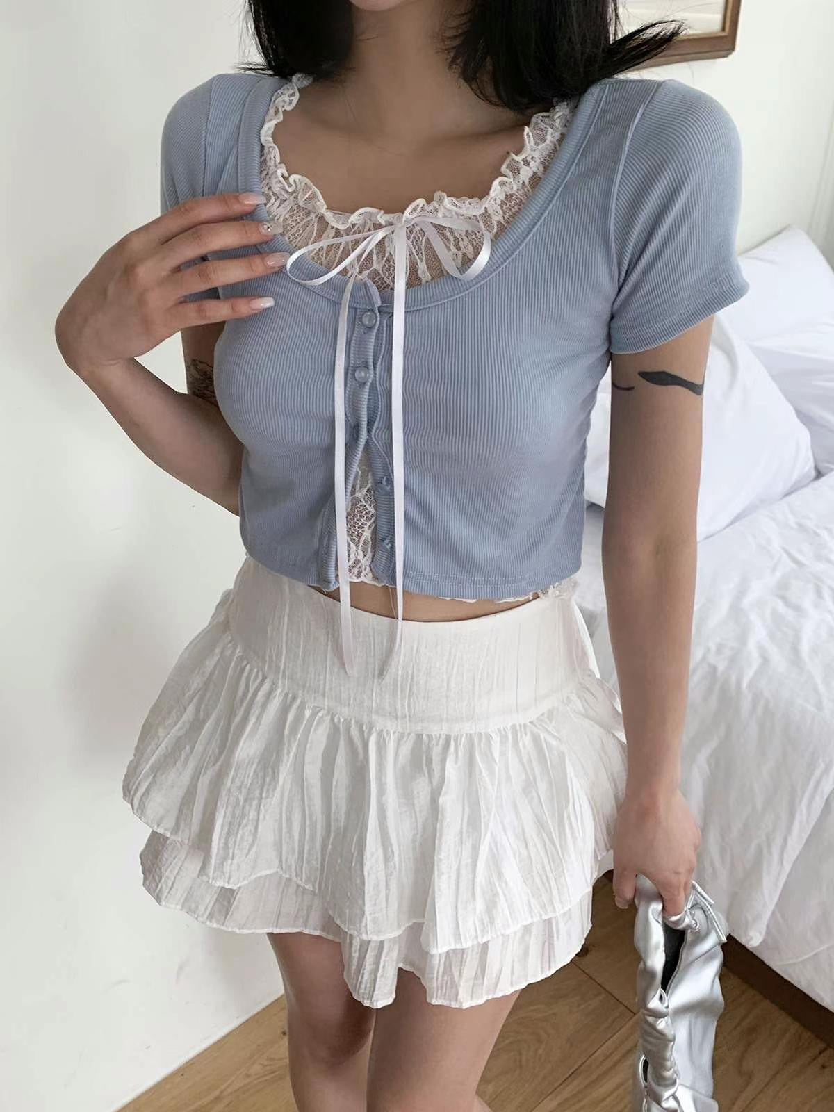 【 ⁼³₌₃⁼³ 甜美𝗚𝗜𝗥𝗟˙🍓 驚喜蕾絲 短版𝗧𝗼𝗽】𝗖𝗵𝗲𝗿𝗿𝘆 𝗕𝗹𝗼𝘀𝘀𝗼𝗺 𝗧𝗼𝗽