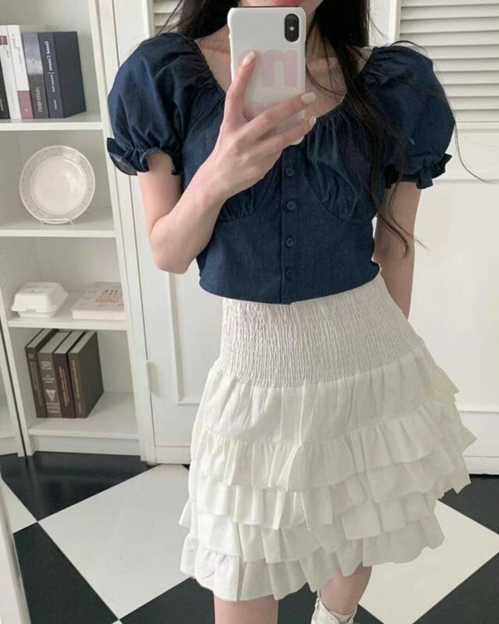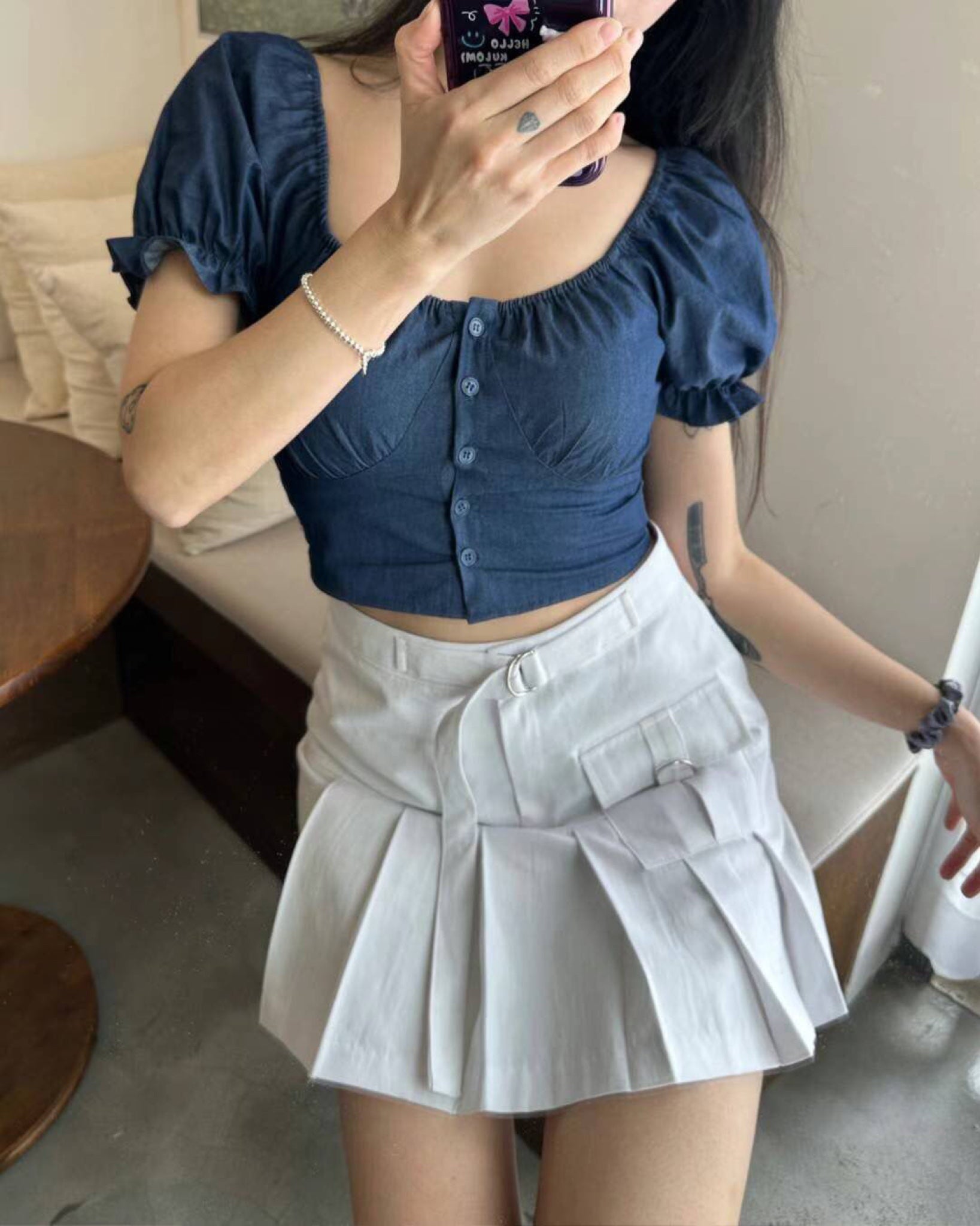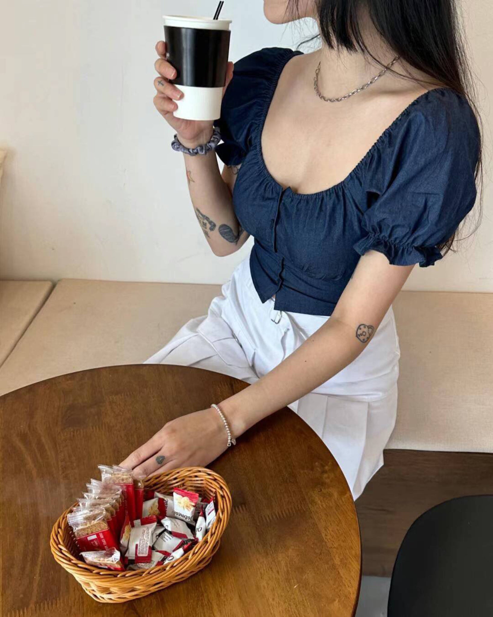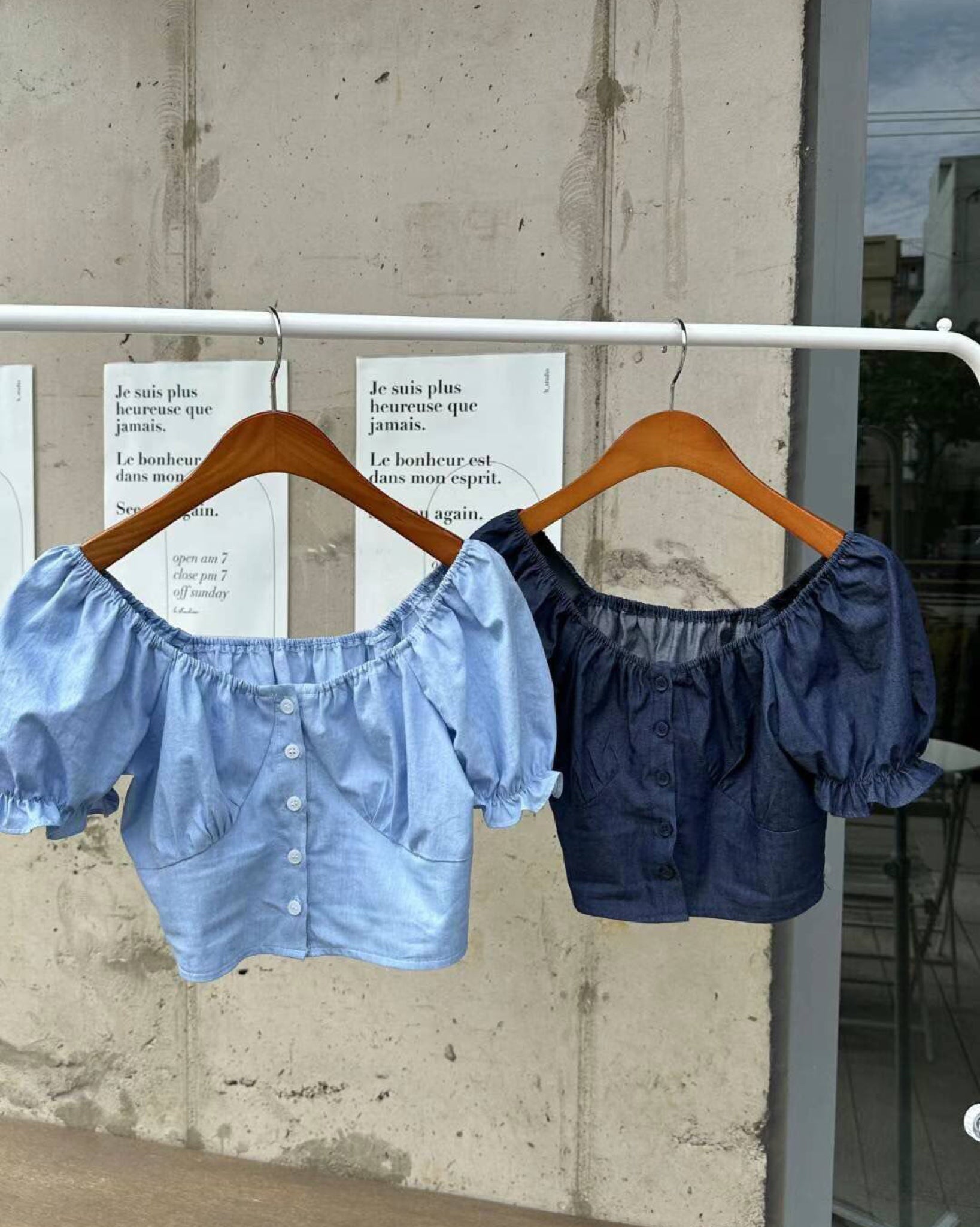 袖口有小蓬鬆感+牛仔布嘅𝗧𝗼𝗽.ᐟ.ᐟ
