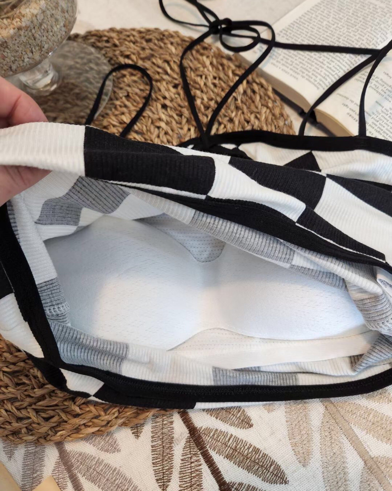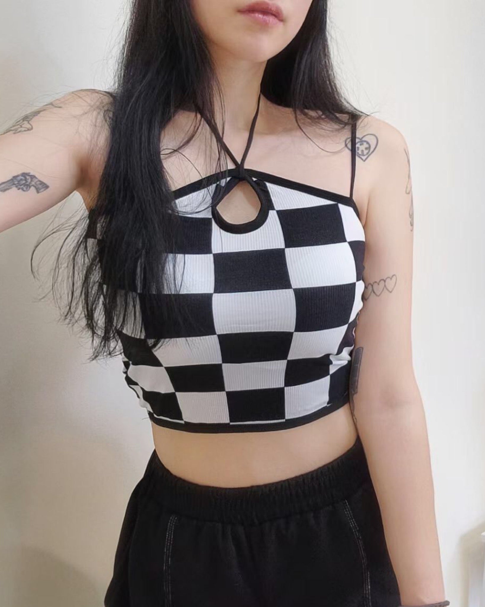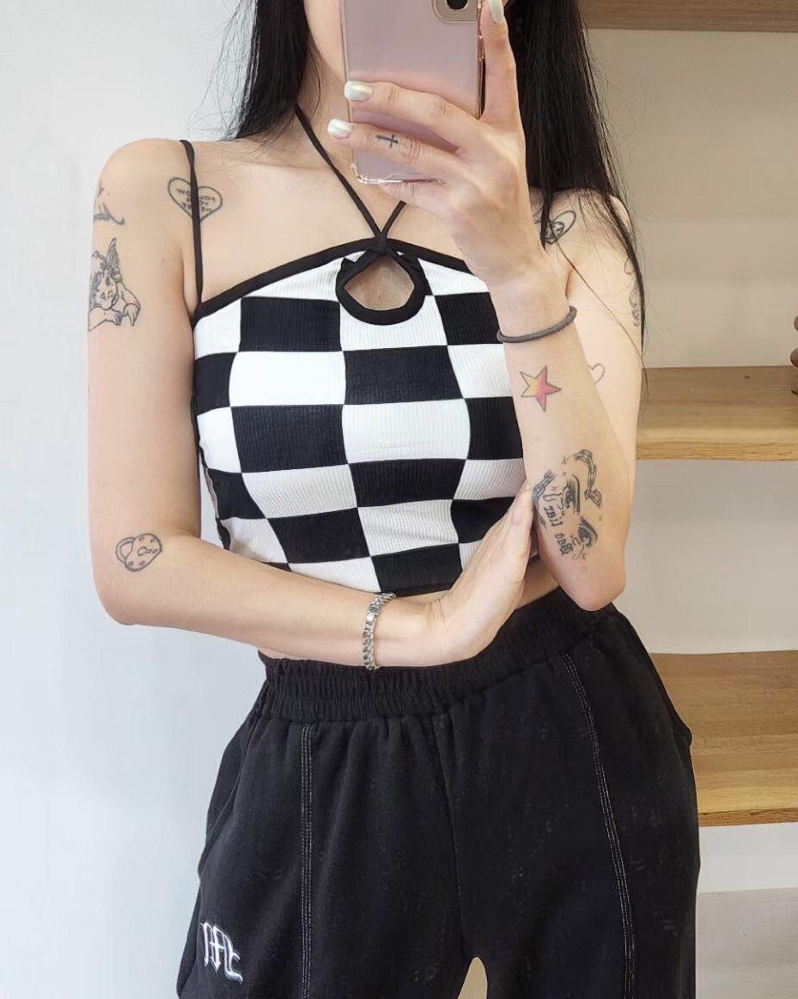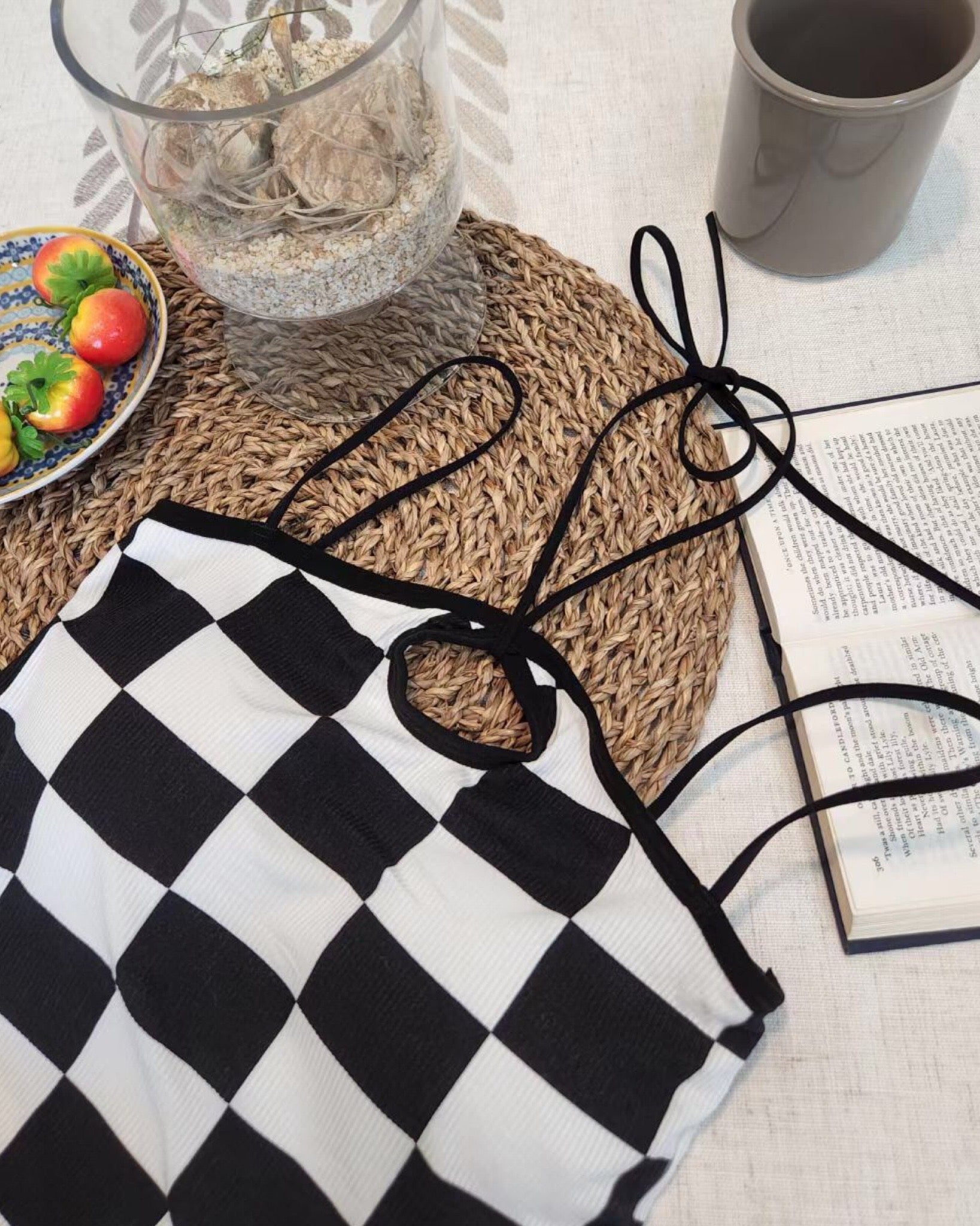 【早鳥價 | 掛頸綁帶.ᐟ.ᐟ】棋盤格吊帶背心 (連𝗣𝗮𝗱)