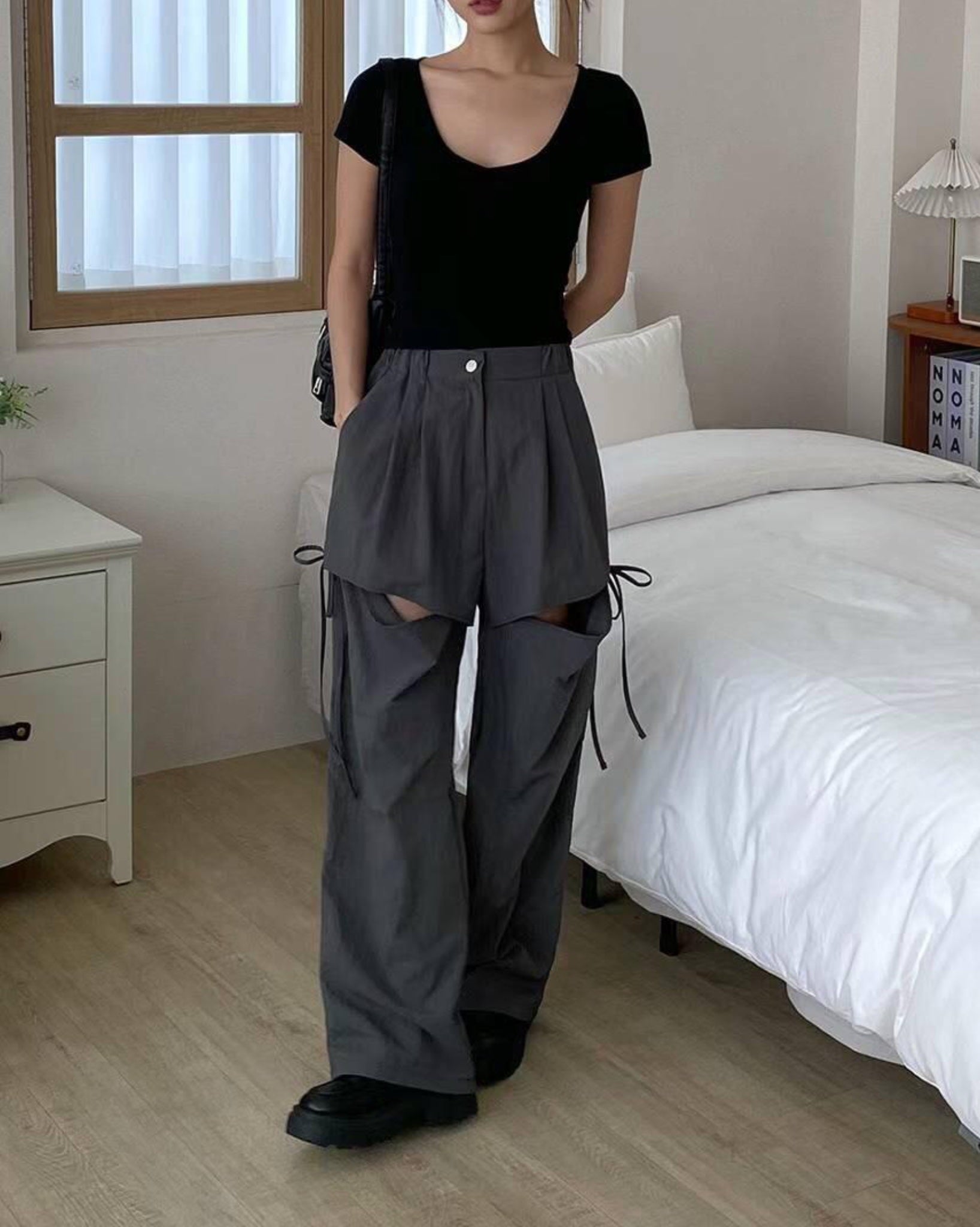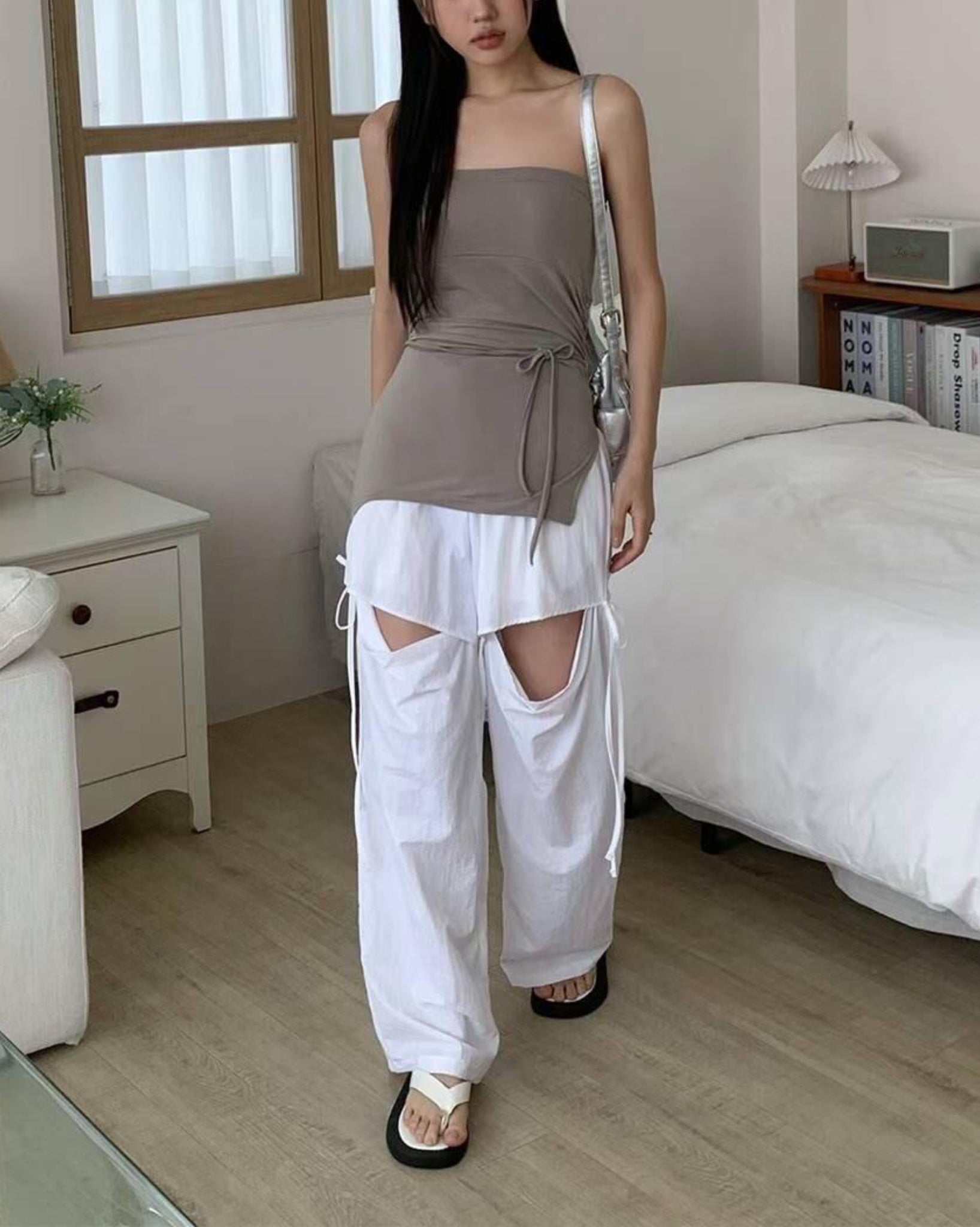 【早鳥價|𝗬𝟮𝗞X 𝗥𝗶𝗯𝗯𝗼𝗻.ᐟ.ᐟ】破洞綁帶褲