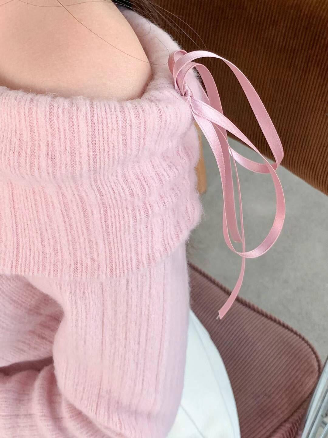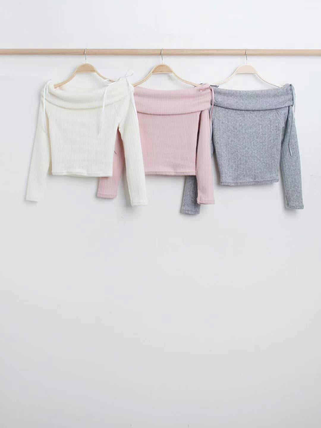 【 仙氣滿滿~蝴蝶結一字膊露肩🎀🎀】軟糯綁帶上衣