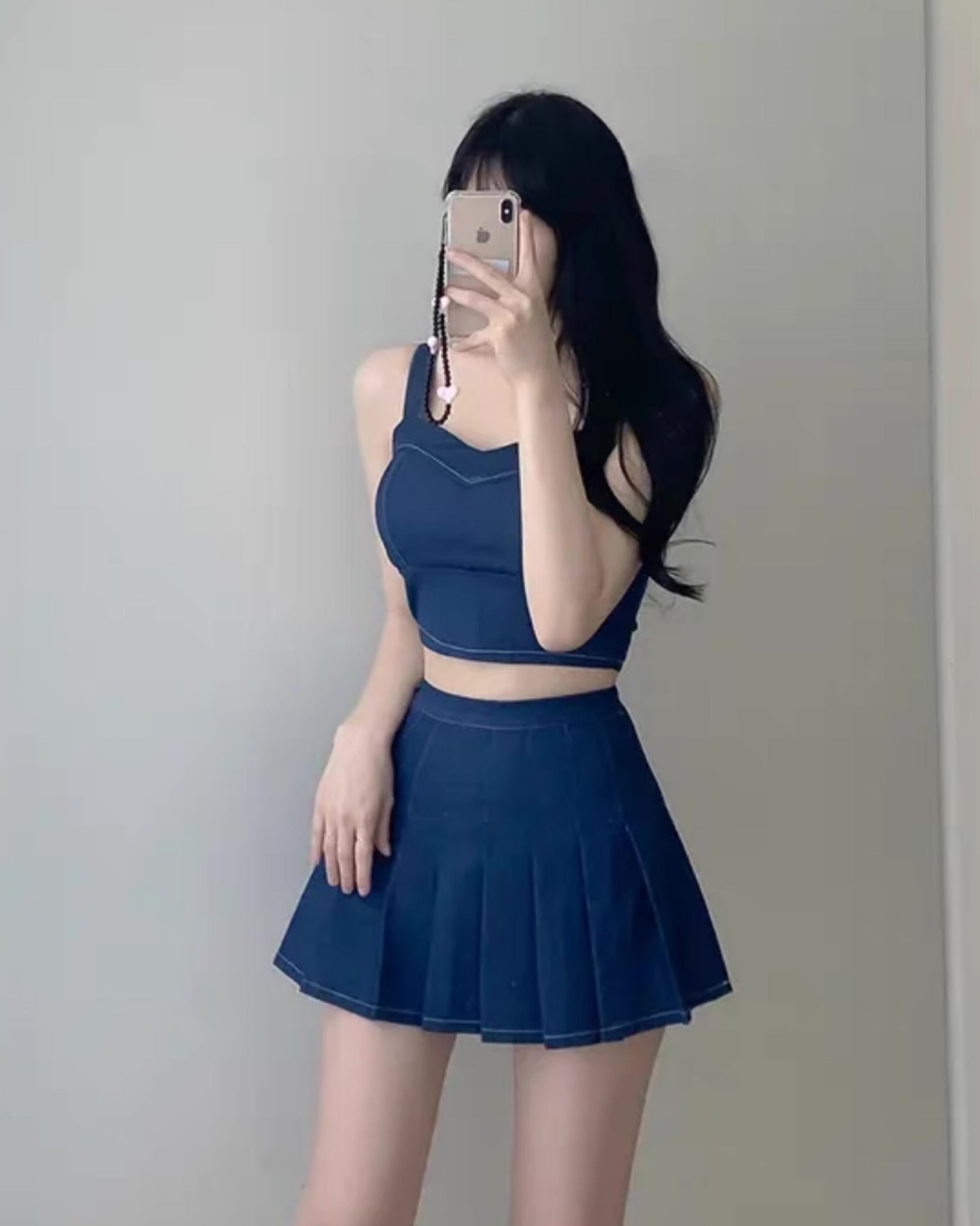 【早鳥價 | 牛仔𝗩𝗶𝗯𝗲+可分開入手.ᐟ.ᐟ】𝗛𝗲𝗮𝗿𝘁 𝗦𝗵𝗮𝗽𝗲 𝗧𝗼𝗽+𝗦𝗸𝗶𝗿𝘁 𝗦𝗲𝘁 (連𝗣𝗔𝗗)