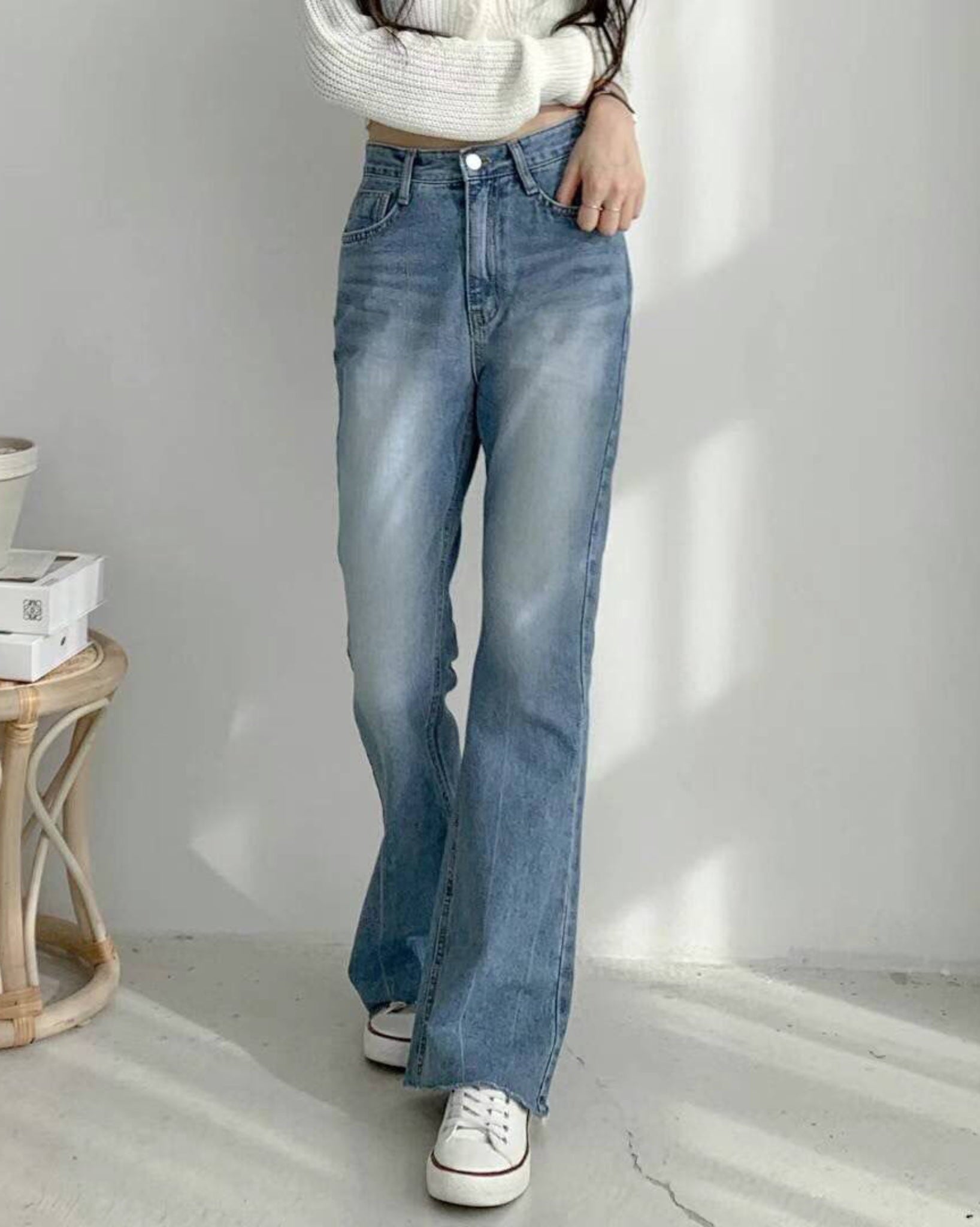 【必入修腿+③個𝗦𝗶𝘇𝗲.ᐟ.ᐟ】牛仔紋高腰闊褲