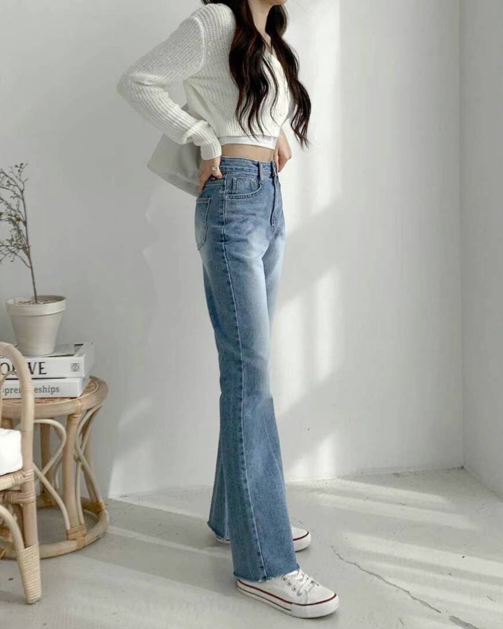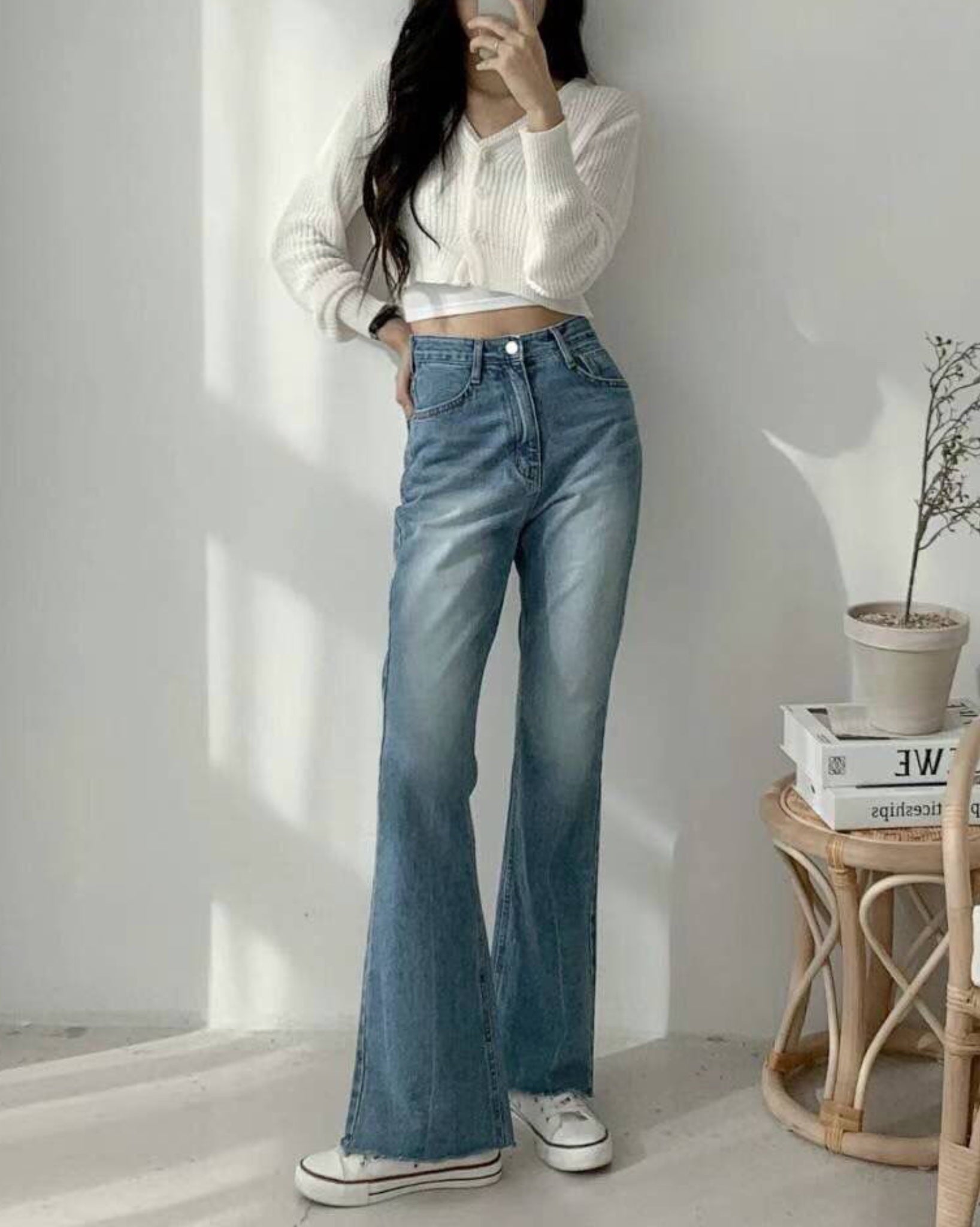 ❀ 女仔必備 | 牛仔紋高腰闊褲 |
